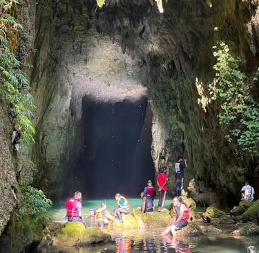 Deeper in, a surprise awaits — natural pools of crystal-clear water hidden within the cave itself. Many travelers take a refreshing dip here, swimming under the watchful guidance of local experts. It’s a surreal moment: floating in an underground pool, surrounded by complete silence except for the gentle echo of dripping water.
